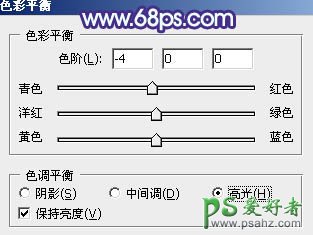 8、创建色彩平衡调整图层,对阴影,高光进行调整,参数设置如图14,15,效果如图16。这一步主要加强图片高光部分的颜色。