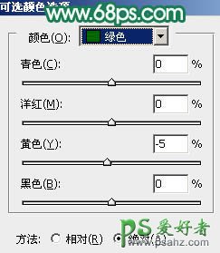 11、创建可选颜色调整图层,对绿、青、白、黑进行调整,参数设置如图20 - 23,确定后用黑色画笔把人物部分擦出来,效果如图24。这一步微调背景部分的颜色。
