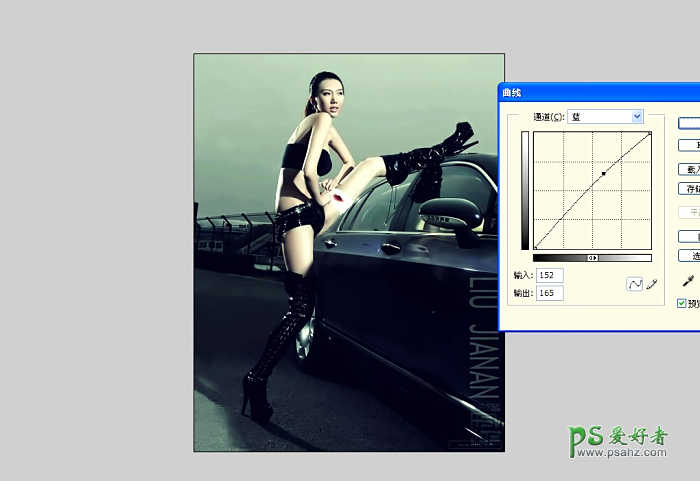 9.选取曲线选择蓝色通道提蓝整体营造更好的气氛.
