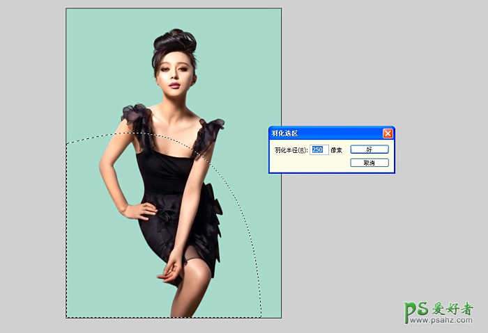 3.新建图层用工具栏里的M画圆工具画一个曲线 执行羽化250像素