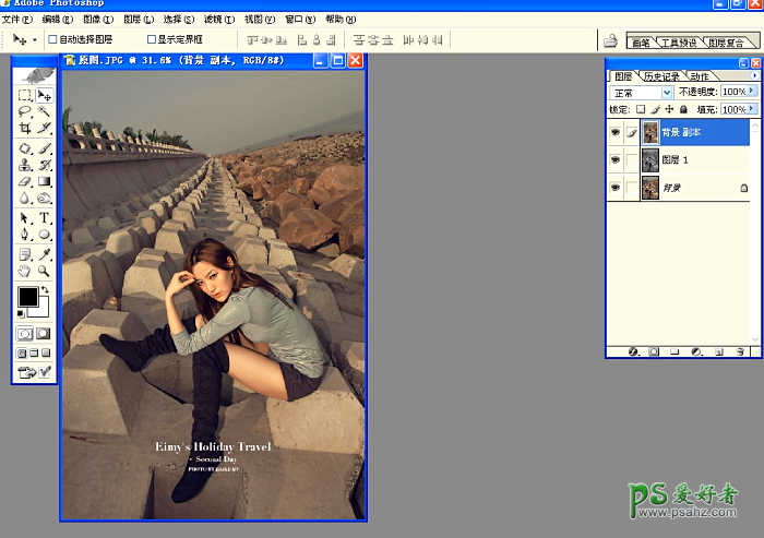 泛黄复古的今很多摄影师为了使自己拍摄的作品调试出前卫复古颜色绞尽脑汁眼下介绍快捷一种方法帮助设计师摄影师调出自己想要的复古色。在学习过程中如果遇到问题请联系设计/文/付杰 QQ:617291798 效果图如下 1.复制人物图层色相饱和度饱和