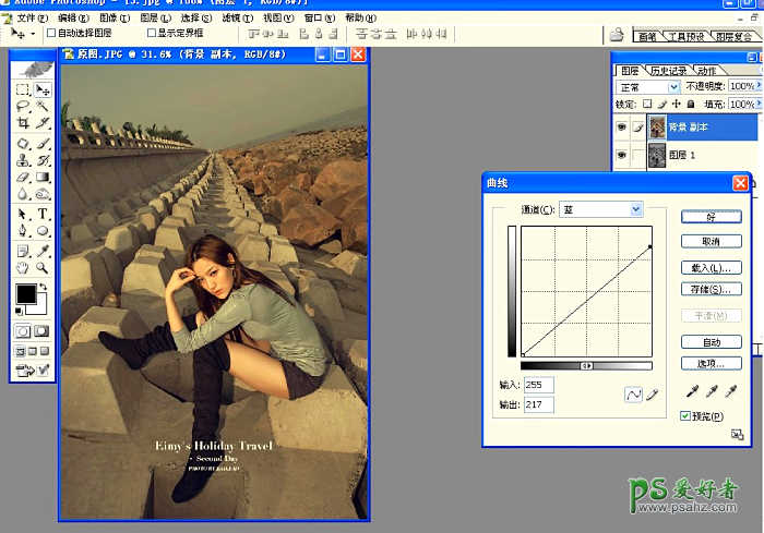 PS快捷调色3部曲:泛黄色复古色美女照片调色