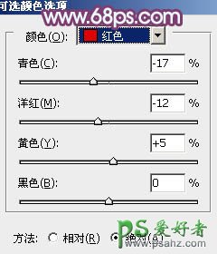 8、再创建可选颜色调整图层,对红色进行调整,参数及效果如下图。这一步把图片中的红色稍微调亮。