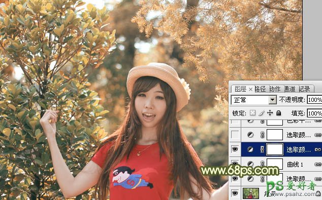 今天我们来学习一篇性感美女自拍照调色实例教程,PS调色教程:给漂亮的性感美女自拍照调出暖橙色,素材图片以黄绿色为主,转为暖色并不复杂。只需要把树叶部分的黄绿色转为橙红色,绿色及暗部的颜色不变,后期再微调一下高光及暗部颜色即可。 最终效果 原