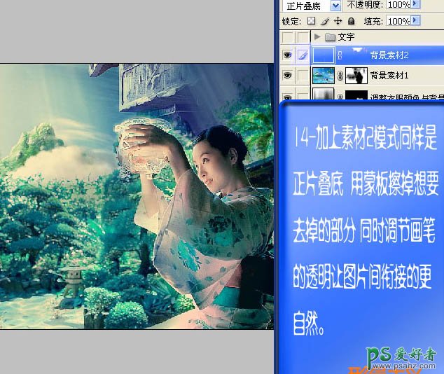 PS调色教程:给日本美女图片调出个性的青绿色透光效果