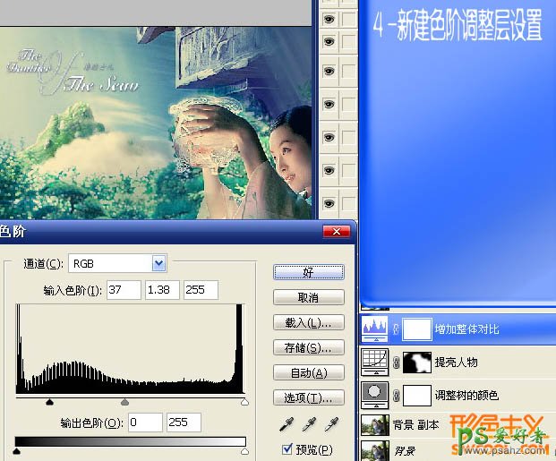 4、创建色阶调整图层,适当加强图片整体对比度,参数设置如下图。