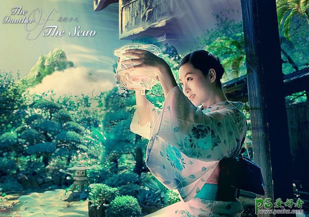 PS日本美女图片调色实例教程,PS调色教程:给日本美女图片调出个性的青绿色透光效果,日本美女艺术照自拍,日本美女自拍写真,本教重点部分是图片的前期调色,需要把图片调成青绿色,也可以按照自己的喜好调色,背景部分也需要加上一些色调。后期再用一些光感素材叠加做出光影较强的图片。
