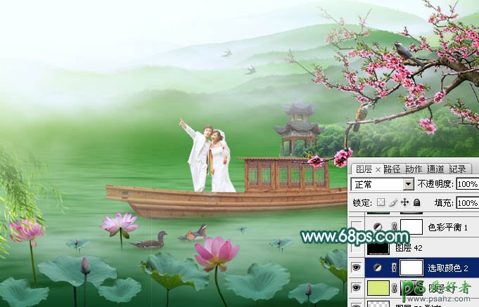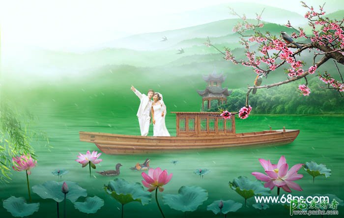 PS婚片后期调色实例教程:打造唯美的春季湖景情侣婚纱照