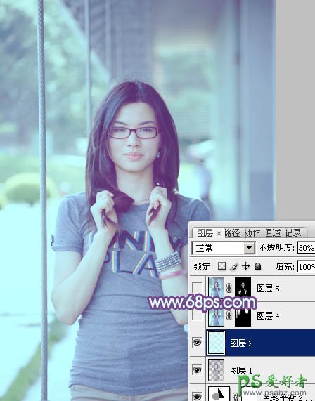 9、按Ctrl + Alt + 2 调出高光选区,新建一个图层填充淡青色:#C2FFFF,不透明度改为:30%,效果如下图。这一步给图片的高光部分增加淡青色。