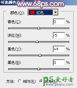 2、创建可选颜色调整图层,对红、黄、中性色进行调整,参数设置如图5 - 7,效果如图8。这一步把人物肤色转为橙黄色。