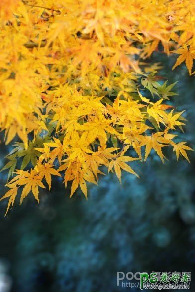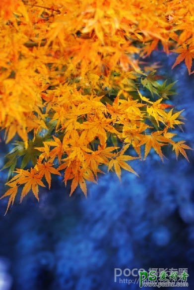 3、使用橡皮擦工具擦拭模糊后的图层,以擦出主体。要留心枫叶的边缘。细心擦拭可以得出如梦幻般的效果。