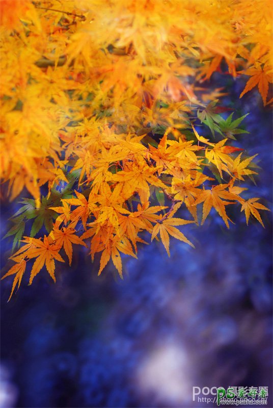 今天我们来教大家学习一篇风景图片调色实例教程,PS后期调色教程:调出梦幻写意的秋叶特写图片,看似简单的秋叶图片,处理起来还是有很多讲究的。首先叶子颜色比较统一,需要多复制几层分别调成不同的颜色,然后用蒙版或橡皮控制这些叶子显示区域增加叶子层次。处理好后还需要用滤镜等增加整体梦幻度,局部还可以用画笔等增加烟雾等丰富画面。