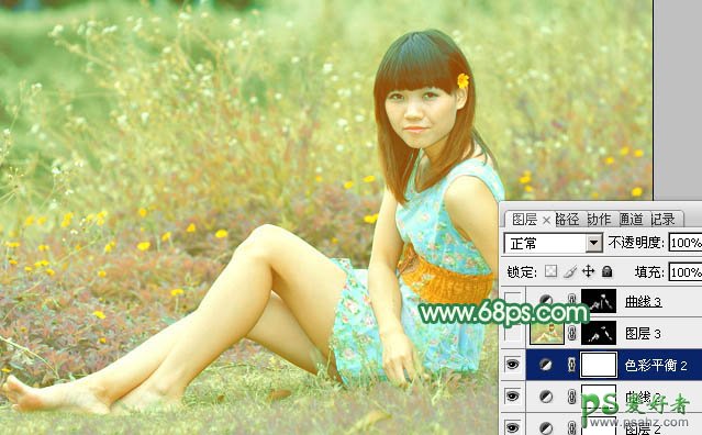 PS后期调色教程:给草地上清纯的少女艺术照调出柔和的小清新黄绿