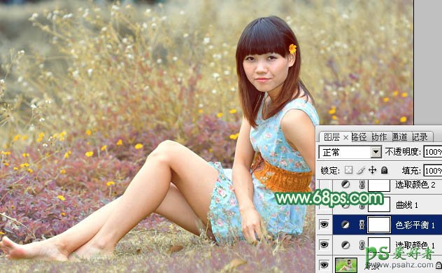 PS后期调色教程:给草地上清纯的少女艺术照调出柔和的小清新黄绿
