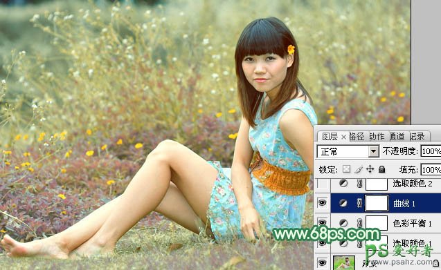 PS后期调色教程:给草地上清纯的少女艺术照调出柔和的小清新黄绿