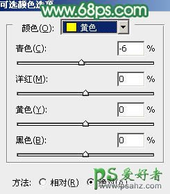 4、创建可选颜色调整图层,对黄、青、黑进行调整,参数设置如图11 - 13,效果如图14。这一步给图片增加橙黄色。