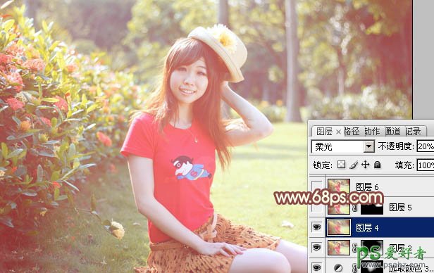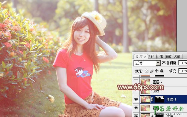 12、新建一个图层,盖印图层。执行:滤镜 > 模糊 > 高斯模糊,数值为5,确定后按住Alt键添加图层蒙版,用白色画笔把背景部分需要模糊的部分擦出来,效果如下图。