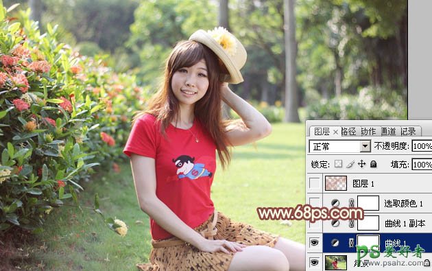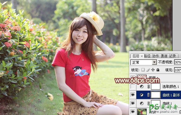 PS调色教程:给清纯的外景红衣少女调出淡美的红黄色