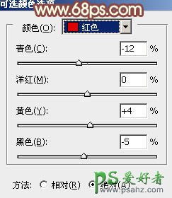 5、创建可选颜色调整图层,对红、黄、白进行调整,参数设置如图12 - 14,效果如图15。这一步给图片增加红色。
