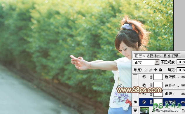 PS给春日绿树边上的清新少女艺术照调出柔和的橙黄色