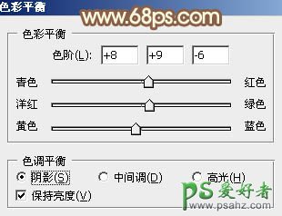 3、创建色彩平衡调整图层,对阴影、中间调、高光进行调整,参数设置如图12 - 14,效果如图15。这一步微调暗部及高光部分的颜色。