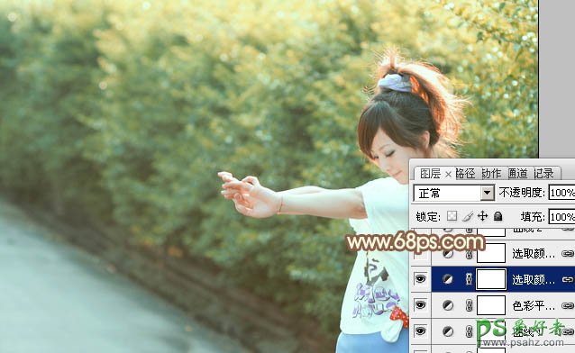 PS给春日绿树边上的清新少女艺术照调出柔和的橙黄色