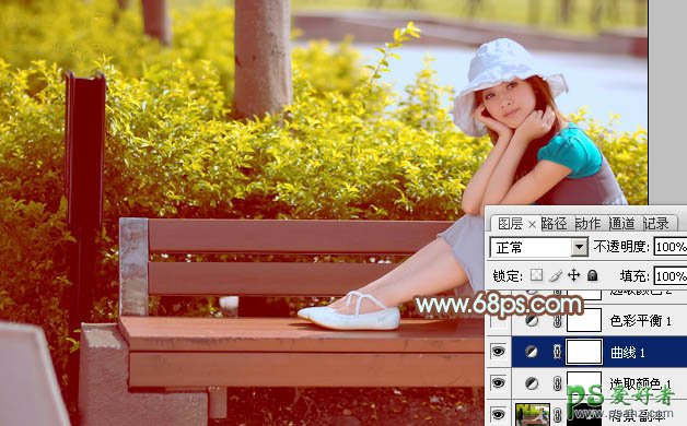 PS给春日绿树边上的清新少女艺术照调出柔和的橙黄色