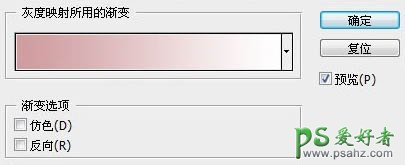 4、建立渐变映射调整层,参数如下,渐变的颜色为左边#cf9c9e,右边#ffffff,参数及效果如下图。