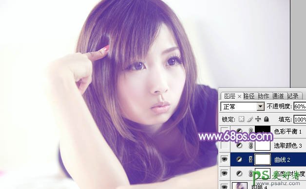 Photoshop调出纯美的淡紫色美女,美女脸部美化处理