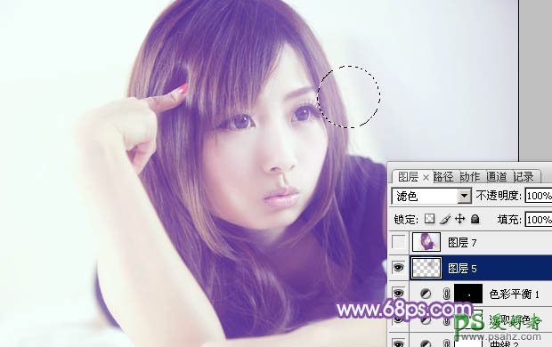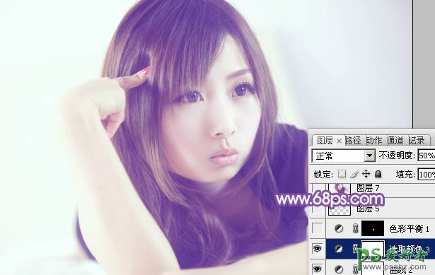 Photoshop调出纯美的淡紫色美女,美女脸部美化处理