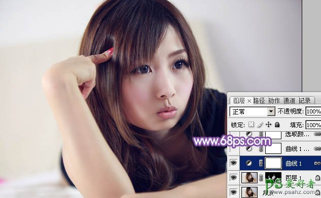 photoshop给漂亮的室内性感美女艺术照调出柔美的淡蓝色