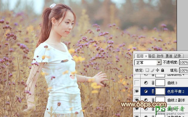 photoshop给花草地里清纯的少女写真照调出甜美的淡黄色