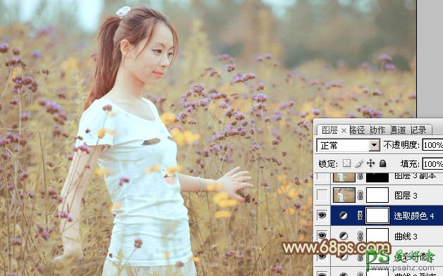 photoshop给花草地里清纯的少女写真照调出甜美的淡黄色