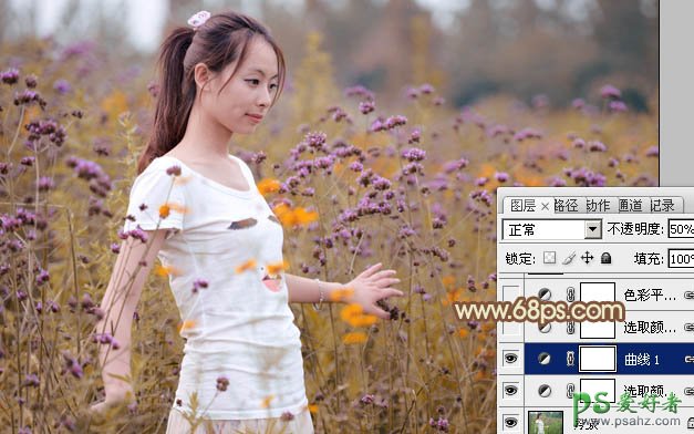 photoshop给花草地里清纯的少女写真照调出甜美的淡黄色