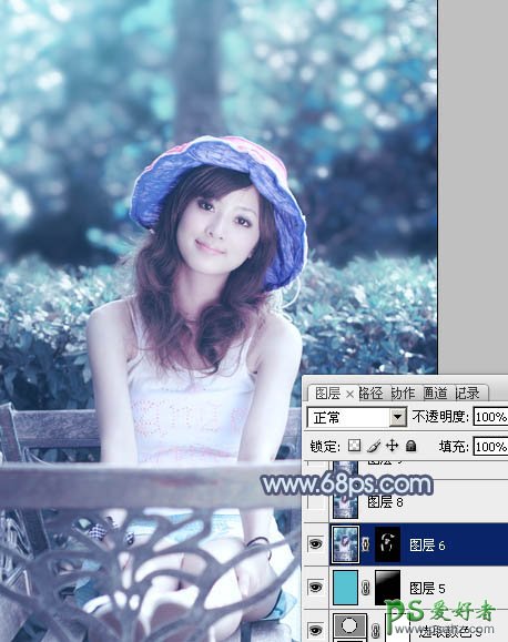 12、新建一个图层填充青色:#5AC1D2,混合模式改为“滤色”,按住Alt键添加图层蒙版,用白色画笔把左上角部分擦出来,效果如下图。