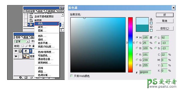 2.与之前的映射一样同一个按钮选择纯色,然后填充蓝色,这里的蓝色不可以选择太深的蓝色,如下图选择淡淡的蓝色就可以了,如果后期觉得不够还可以再加!