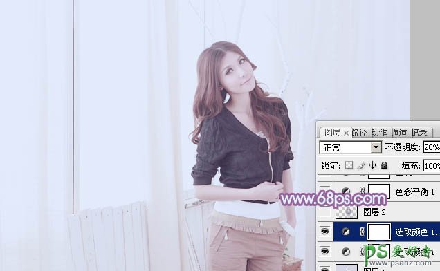 4、按Ctrl + J 把当前可选颜色调整图层复制一层,不透明度改为:20%,效果如下图。