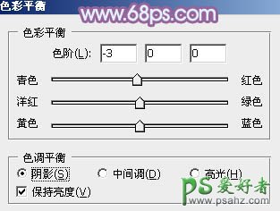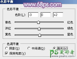 6、创建色彩平衡调整图层,对阴影,高光进行调整,参数设置如图13,14,效果如图15。这一步主要加强图片高光部分的颜色。