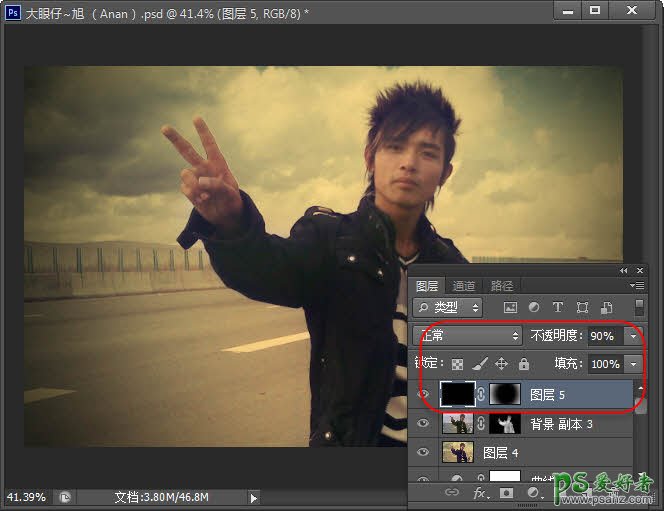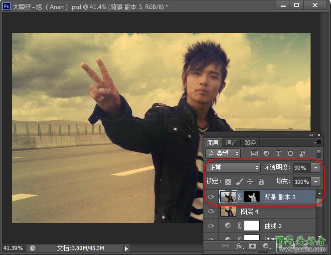 巧用photoshop给高速公路边上的师哥自拍照调出忧郁的色彩
