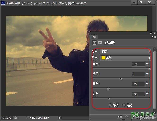 巧用photoshop给高速公路边上的师哥自拍照调出忧郁的色彩