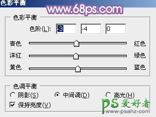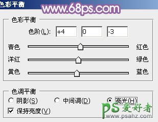 6、创建色彩平衡调整图层,对阴影、中间调、高光进行调整,参数设置如图15 - 17,效果如图18。这一步主要给图片的暗部增加蓝色,高光部分增加橙黄色。