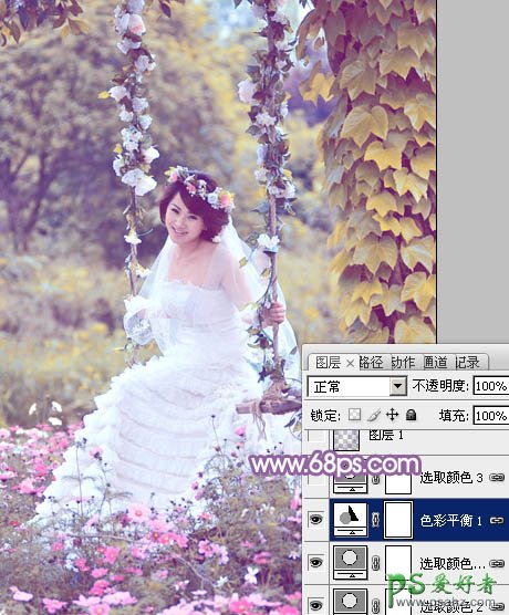 PS婚片后期调色,给荡秋千的少女婚片调出淡调蓝黄色