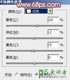 5、创建可选颜色调整图层,对红、黄、白进行调整,参数设置如图12 - 14,效果如图15。这一步给图片增加橙红色,高光部分增加淡蓝色。