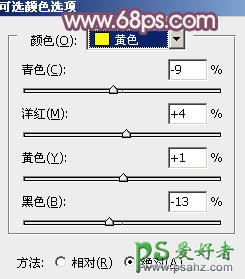 今天我们来教大家学习一篇PS美女照片调色实例教程,photoshop调出浪漫秋日色彩清纯少女艺术写真照,柔和色彩的小清新美女图片调色教程。 最终效果 原图 1、打开素材,创建可选颜色调整图层,对黄色进行调整,参数及效果如下图。这一步把图片