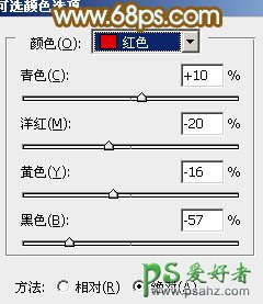 5、创建可选颜色调整图层,对红、黄、洋红、白、黑进行调整,参数设置如图20 - 24,效果如图25。这一步把图片的主色转为黄褐色。