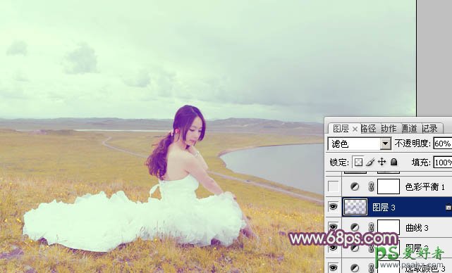 9、按Ctrl + Alt + 2 调出高光选区,按Ctrl + Shift + I 反选,新建一个图层填充暗蓝色:#3024A2,混合模式改为“滤色”,不透明度改为:60%,效果如下图。这一步给图片的暗部增加蓝色。