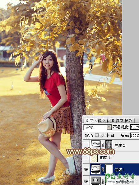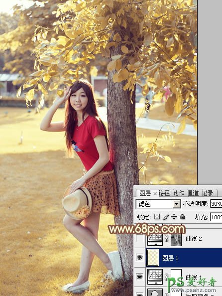 PS给公园里的未成年少女艺术照调出性感的秋黄色