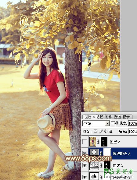 PS给公园里的未成年少女艺术照调出性感的秋黄色