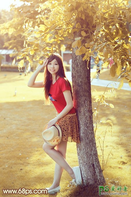 教程,用PS给公园里的未成年少女艺术照调出性感的秋黄色,让这位大胆的美少女写真照变得更漂亮,更浪漫。