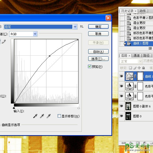 PS后期调色实例教程:室内美女艺术照暖调人像调色